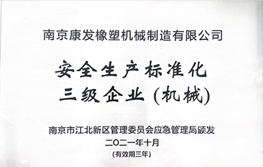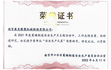 2021年度江北新區(qū)安全生產(chǎn)工作優(yōu)秀單位 | 安全生產(chǎn)標(biāo)準(zhǔn)化三級企業(yè)(機械) |